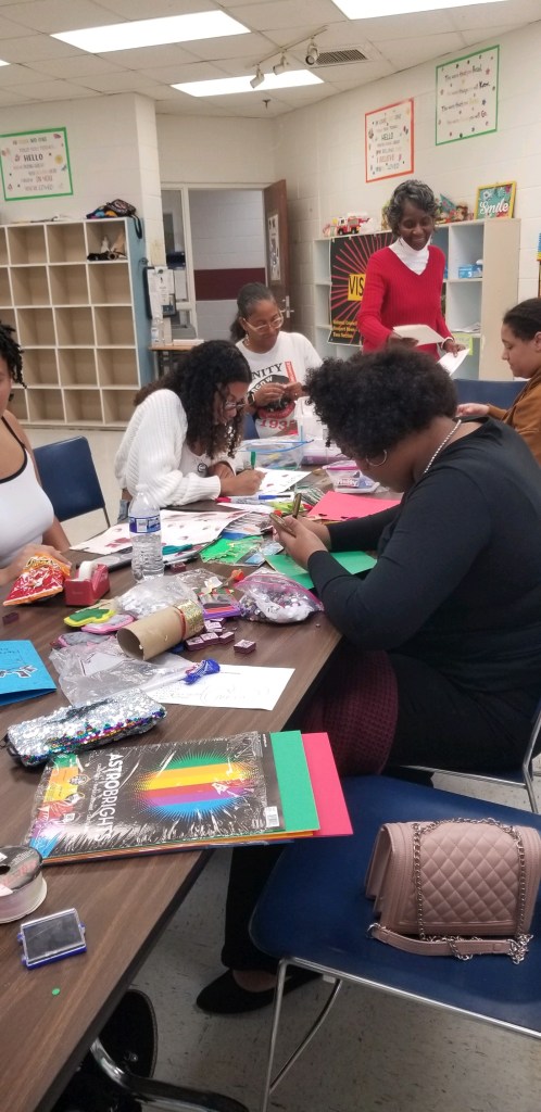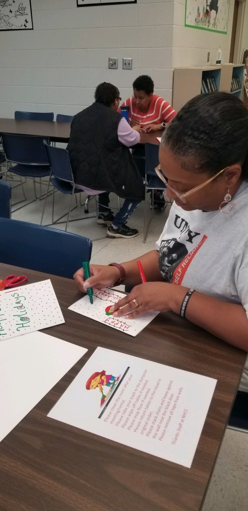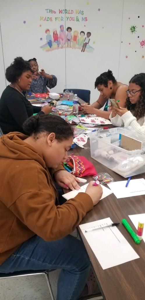 Visionaires’ Lead Sponsor Mrs. Sylver and Sponsor Mrs. Debra are helping the young ladies to spread holiday cheer by making Christmas Cards for our lovely seniors!
